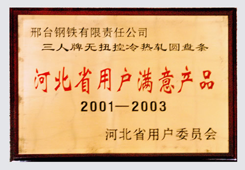 三人牌無(wú)扭控冷熱軋圓盤(pán)條被評(píng)為河北省用戶(hù)滿(mǎn)意產(chǎn)品