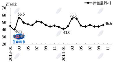 蘭格鋼鐵信息研究中心統(tǒng)計(jì)發(fā)布2014年10月鋼鐵流通業(yè)PMI總指數(shù)為47.8,環(huán)比微升0.6個(gè)百分點(diǎn)(見圖1),顯示鋼鐵流通市場(chǎng)活躍度略有好轉(zhuǎn)。從各項(xiàng)分指數(shù)看,10月份鋼鋼鐵流通業(yè)PMI調(diào)查的10項(xiàng)分指數(shù)5升5降。其中,企業(yè)銷量增加,下游訂單增加,但企業(yè)對(duì)后市較為謹(jǐn)慎,采購(gòu)意愿未增(見圖2)??傮w判斷11月鋼鐵流通市場(chǎng)需求景氣微升。