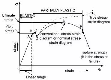 對于可以發(fā)生拉伸塑性變形的材料,最常用的有兩類曲線:工程應(yīng)力-工程應(yīng)變曲線和真應(yīng)力-真應(yīng)變曲線。它們的區(qū)別在于計算應(yīng)力時采用的面積不同,前者用樣品的初始面積,后者用拉伸過程中的實時橫截面積。因此,在應(yīng)力-應(yīng)變曲線上,真應(yīng)力一般比工程應(yīng)力高。