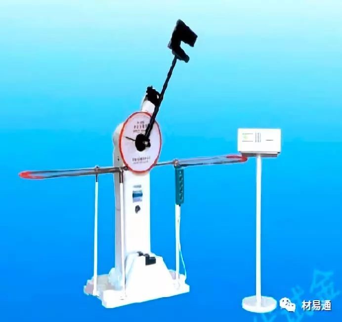 試驗過程:將樣品水平放在試驗機的支座上,缺口位于沖擊相背的方向。然后將具有一定質(zhì)量m的擺錘舉至一定高度H1,使其獲得一定位能mgH1
