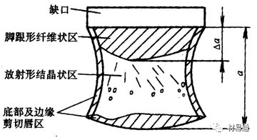 裂紋快速擴展形成結(jié)晶區(qū),到了壓縮區(qū)后,應力狀態(tài)發(fā)生變化,裂紋擴展速度再次減小,形成纖維區(qū)。