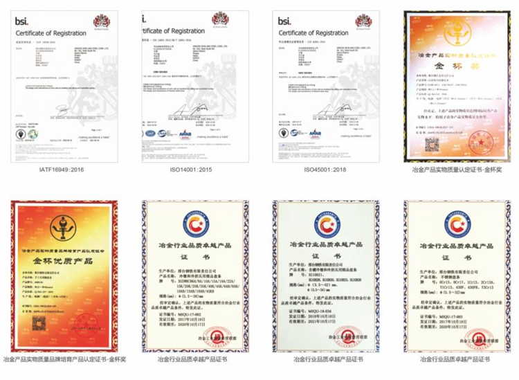 1999年邢鋼開始推行質(zhì)量管理體系,成為最早一批通GB/T19000族標(biāo)準(zhǔn)過認證的鋼企之一。2006年,作為全國首批鋼鐵企業(yè),邢鋼全流程通過了英標(biāo)認證公司TS16949汽車行業(yè)質(zhì)量管理體系。產(chǎn)品研發(fā)也是芝麻開花節(jié)節(jié)高,通過創(chuàng)新研發(fā)模式相繼開發(fā)了汽車用鋼、鐵路用鋼,高強橋梁用鋼,耐候鋼、重熔鋼等產(chǎn)品,涵蓋冷鐓鋼、彈簧鋼、軸承鋼、純鐵、預(yù)應(yīng)力鋼、易切削鋼、工模具鋼、耐候鋼等十八大系列。如今的邢鋼已經(jīng)通過EMS,OHSMS等9個體系認證!