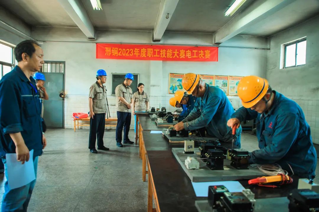 6月20日,邢鋼2023年度職工技能大賽電工決賽在動力廠舉行,來自煉鋼廠、線材廠、煉鐵廠、燒結廠、焦化廠、動力廠、儲運中心7個單位的17名選手同臺競技。公司黨委書記、董事長張育明,公司黨委副書記、副總經理、工會主席魏利剛對此項工作予以高度關注,并蒞臨比賽現(xiàn)場,觀看參賽員工實操比賽情況。