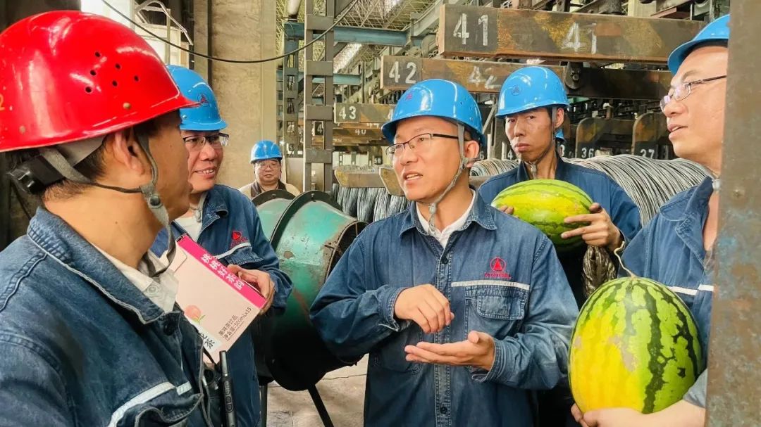 7月8日上午,為落實(shí)公司黨委書記、董事長(zhǎng)張育明關(guān)于“把防暑降溫、關(guān)愛(ài)員工、安全生產(chǎn)等抓細(xì)抓實(shí)”的工作要求,夏日送清涼活動(dòng)有序開展,公司向煉鋼、線材、煉鐵、燒結(jié)、動(dòng)力、儲(chǔ)運(yùn)高溫下堅(jiān)守崗位的職工送去西瓜、飲料慰問(wèn)品及防暑降溫必備物資用品,把企業(yè)的關(guān)懷送到職工心坎里,對(duì)大家一直以來(lái)為邢鋼辛勤付出表達(dá)謝意,并囑咐在崗員工在堅(jiān)守崗位的同時(shí)注意勞逸結(jié)合,謹(jǐn)防高溫中暑,確保身體健康、安全生產(chǎn)。