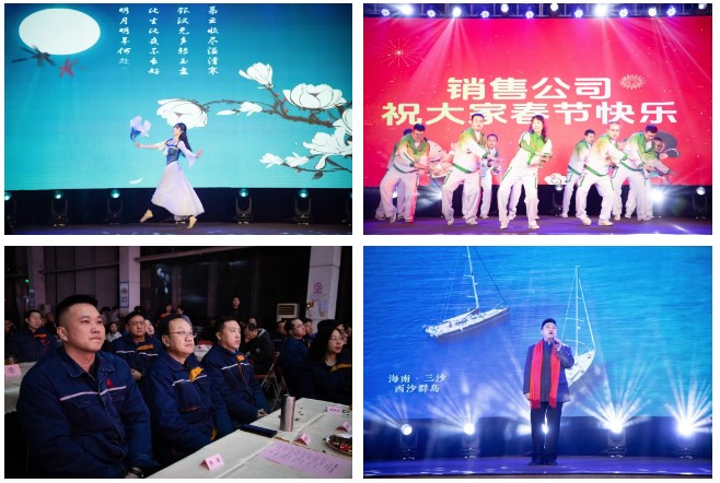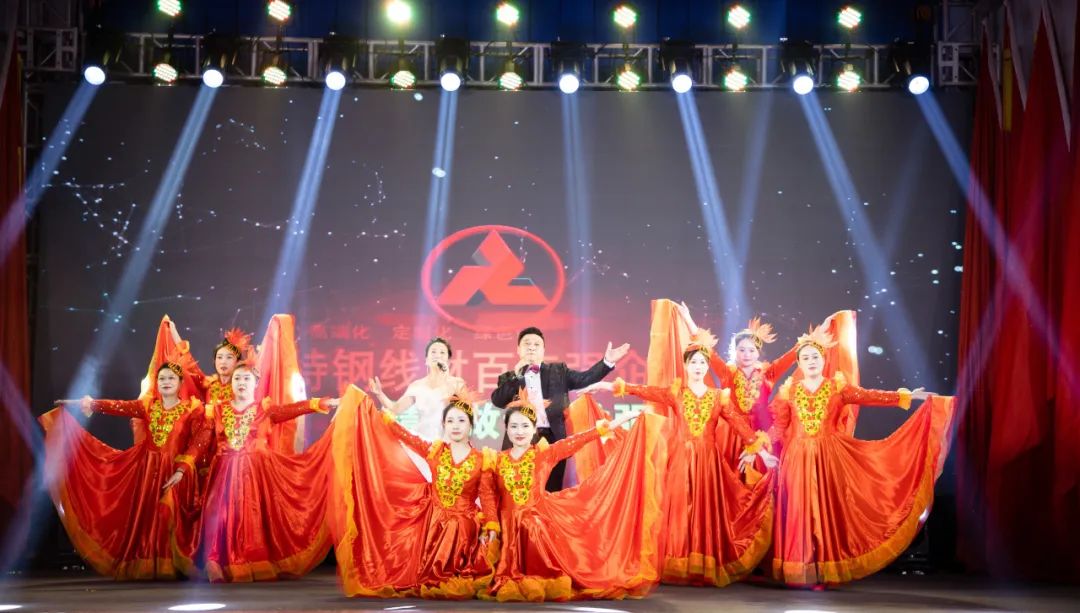 演出開始前,由各二級(jí)單位錄制的《鋼鐵工人大拜年》視頻為聯(lián)歡會(huì)開幕烘托出濃厚的節(jié)日喜慶氣氛。煉鐵廠王艷等的開場(chǎng)舞《中國龍,舞起來》歡樂、動(dòng)感;儲(chǔ)運(yùn)中心侯伊坤的獨(dú)唱《風(fēng)吹麥浪》唯美、清新;新翔公司楊立興等的三句半表演《賀龍年》則輕松、詼諧;煉鐵廠劉士沛與新入職年輕人“以老帶新”的歌伴舞《時(shí)代號(hào)子——致敬邢鋼人》點(diǎn)燃起晚會(huì)現(xiàn)場(chǎng)觀眾的火熱激情。質(zhì)量控制部孫濤的薩克斯獨(dú)奏《she》、焦化廠申學(xué)軍的《戲曲串燒》、線材廠魏東的獨(dú)唱《兄弟干杯》、財(cái)務(wù)部楊佳薏的獨(dú)舞《星河嘆》、銷售公司田芳等的小合唱《不放棄》、煉鋼廠甄建軍、張康健的二重唱《可能》、動(dòng)力廠董巖、陳險(xiǎn)峰等的歌舞《最親的人》等節(jié)目繽紛呈現(xiàn),展示了邢鋼人多才多藝的別樣風(fēng)貌;煉鐵廠楊曉霞等的情景劇《歲月》以兩代人的視角,抒發(fā)了企業(yè)歷史變遷中不變的邢鋼人情懷;賈凌雪、陳燕、魏秋紅、李濟(jì)興聯(lián)袂表演的詩朗誦《沉香·甲子邢鋼》,回顧邢鋼65年跋涉歷程,寄語新邢鋼美好未來;公司總經(jīng)理彭世丹等中高層領(lǐng)導(dǎo)的合唱《眾人劃槳開大船》把整場(chǎng)聯(lián)歡會(huì)推向高潮,臺(tái)上歌聲鏗鏘,臺(tái)下掌聲相和,激發(fā)起邢鋼人“眾志成城創(chuàng)大業(yè),凝心聚力贏未來”的壯志豪情。聯(lián)歡會(huì)在《陽光路上》的歌聲中落下帷幕,預(yù)示著新邢鋼的未來發(fā)展一路陽光、前程錦繡!