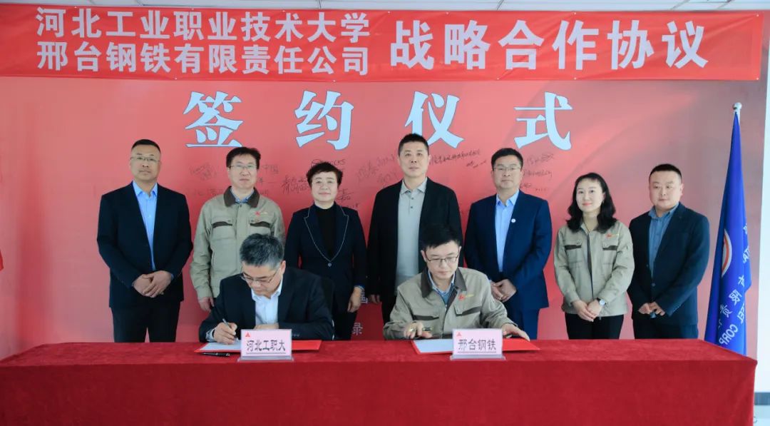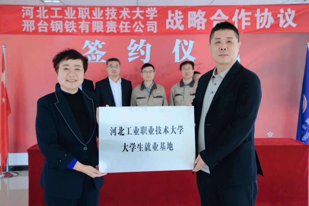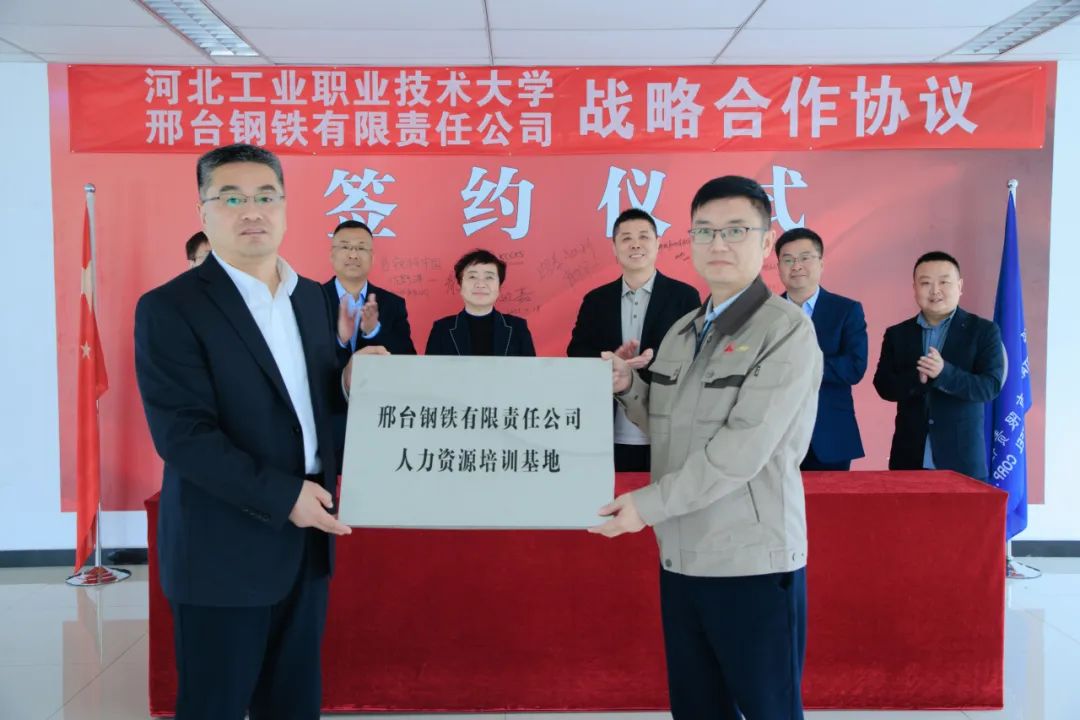 在與會人員的共同見證下,雙方代表簽訂了校企合作協(xié)議。還分別進行了“河北工業(yè)職業(yè)技術(shù)大學(xué)大學(xué)生就業(yè)基地”、“河北工業(yè)職業(yè)技術(shù)大學(xué)實踐教學(xué)基地”、“邢臺鋼鐵有限責(zé)任公司人力資源培訓(xùn)基地”授牌互認。