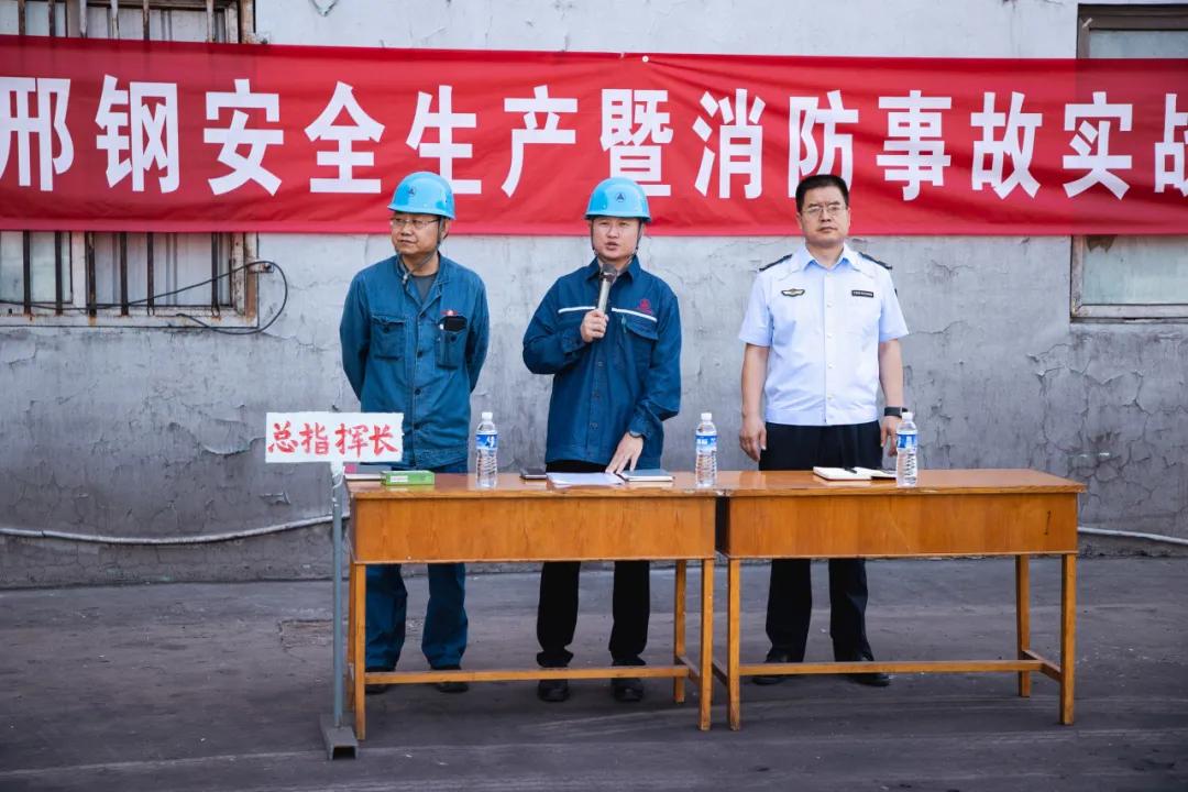 上午8點(diǎn)55分,邢鋼副總經(jīng)理李紅超宣布應(yīng)急演練正式開始。9時(shí),中控室氣體檢測報(bào)警設(shè)施顯示5#探頭報(bào)警,粗苯工檢查發(fā)現(xiàn)粗苯罐放空閥外側(cè)法門里側(cè)法蘭開裂,發(fā)生粗苯泄漏,隨即報(bào)告值班廠長,焦化廠粗苯儲(chǔ)罐事故專項(xiàng)應(yīng)急預(yù)案響應(yīng)啟動(dòng)。警報(bào)一響,應(yīng)急指揮部迅速成立,現(xiàn)場所有人員在指揮長的指導(dǎo)下,按照應(yīng)急預(yù)案有序開展了處置、救援等應(yīng)急程序。線材廠、煉鋼廠、煉鐵廠、質(zhì)控部等單位組織人員到現(xiàn)場觀摩學(xué)習(xí)。