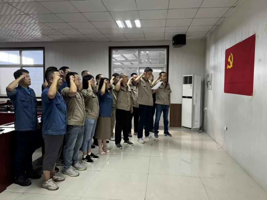 鏗鏘恢宏的誓詞,強(qiáng)烈震撼著在場的每一位黨員,一字一句,神圣而豪邁,黨員們再一次接受了深刻的黨性教育和靈魂洗禮,堅(jiān)定了一心向黨的崇高信念。