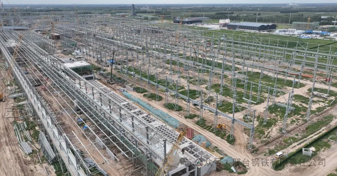 在大盤卷車間西側(cè)的不遠(yuǎn)處,就是新邢鋼的心臟地帶——熔融還原爐!它可是新邢鋼的超級(jí)大明星,一路上我倆嘰嘰喳喳地探討過(guò)好多問(wèn)題,全部都是關(guān)于它的建設(shè)情況。目前它還沒(méi)有落好,但我們有這樣的耐心,好事兒多磨嘛!看還原爐旁邊那些架起的鋼結(jié)構(gòu),也如同衛(wèi)士一般站在那里,我相信它們也和你一樣,熱切期待還原爐像啟明星一樣冉冉升起,照亮整個(gè)新邢鋼,引領(lǐng)行業(yè)未來(lái)!