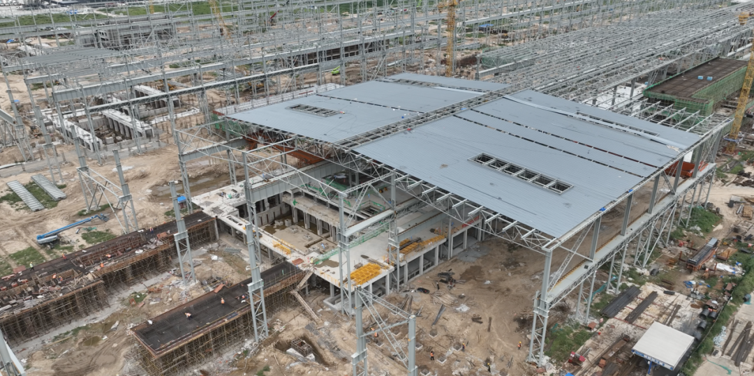 走在項(xiàng)目現(xiàn)場,隨處可見矗立的鋼結(jié)構(gòu)和封頂?shù)慕ㄖ黧w。項(xiàng)目主要部分從西向東分別是煉鐵區(qū)域、煉鋼區(qū)域和軋鋼區(qū)域,項(xiàng)目鋼結(jié)構(gòu)工程已全面鋪開。