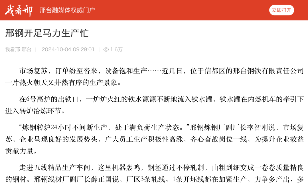 在 6 號(hào)高爐的出鐵口,一爐爐火紅的鐵水源源不斷地流入鐵水罐,鐵水罐在內(nèi)燃機(jī)車(chē)的牽引下進(jìn)入轉(zhuǎn)爐冶煉環(huán)節(jié)。“煉鋼轉(zhuǎn)爐 24 小時(shí)不間斷生產(chǎn), 處于滿負(fù)荷生產(chǎn)狀態(tài)。”邢鋼煉鋼廠副 廠長(zhǎng)李智剛說(shuō),市場(chǎng)復(fù)蘇,企業(yè)呈現(xiàn)良好的發(fā)展勢(shì)頭,廣大員工生產(chǎn)積極性高漲,齊心奮戰(zhàn)崗位一線,為提升企業(yè)效益貢獻(xiàn)力量。走進(jìn)五線精品生產(chǎn)車(chē)間,這里機(jī)器轟鳴,鋼坯通過(guò)不停軋制,由粗到細(xì)變成一卷卷質(zhì)量精良的鋼材。邢鋼線材廠副廠長(zhǎng)薛正國(guó)說(shuō),廠區(qū) 3 條軋線、 1 條開(kāi)坯線都在加緊生產(chǎn),力爭(zhēng)多產(chǎn) 出、多收益。近年來(lái),邢鋼致力于轉(zhuǎn)型升級(jí)促進(jìn)高質(zhì)量發(fā)展,專(zhuān)注于工業(yè)新材料的研發(fā)制造,公司優(yōu)特鋼比例達(dá) 100%,高新產(chǎn)品達(dá) 70%以上,擁有冷鐓鋼、純鐵、彈簧鋼等 18 大類(lèi) 600 多個(gè)鋼種 3500 多種產(chǎn)品,廣泛應(yīng)用于汽車(chē)、大跨 度橋梁、鐵路等國(guó)家優(yōu)先發(fā)展的領(lǐng)域。高品質(zhì)特鋼產(chǎn)品讓邢鋼不斷贏得市場(chǎng)認(rèn)可。前不久,在上海國(guó)際緊固件 工業(yè)博覽會(huì)和 2024 印尼雅加達(dá)東南亞緊固件專(zhuān)業(yè)展上,邢鋼與巴西、越南等多個(gè)國(guó)家的企業(yè)達(dá)成合作意向;邢鋼的“新能源汽車(chē)用高強(qiáng)度超高潔凈度冷鐓鋼技術(shù)創(chuàng)新及應(yīng)用”項(xiàng)目經(jīng)河北省質(zhì)量 文化協(xié)會(huì)選拔、中國(guó)質(zhì)量協(xié)會(huì)推薦,成功入圍 2024 年度國(guó)際質(zhì)量創(chuàng)新大賽。“邢鋼專(zhuān)注高端鋼材生產(chǎn),市場(chǎng)競(jìng)爭(zhēng)力強(qiáng),訂單充足,未來(lái)一個(gè)月的訂單已經(jīng)基本排滿,多種規(guī)格產(chǎn)品訂單量增長(zhǎng)。”在五線中控室,薛正國(guó)在電腦上翻看排單表,信心十足地說(shuō)“,在市場(chǎng)大環(huán)境穩(wěn)定的情況下,訂單量有保證。”在采訪中,五線精品生產(chǎn)車(chē)間主任張志斌說(shuō),火力全開(kāi)的生產(chǎn)景象令人振奮,他將把自己 20 年的工作經(jīng)驗(yàn)運(yùn)用到生產(chǎn)中去,推動(dòng)鋼材標(biāo)準(zhǔn)化生 產(chǎn),滿足客戶的需求,不斷提升產(chǎn)品質(zhì)量和邢鋼品牌滿意度。