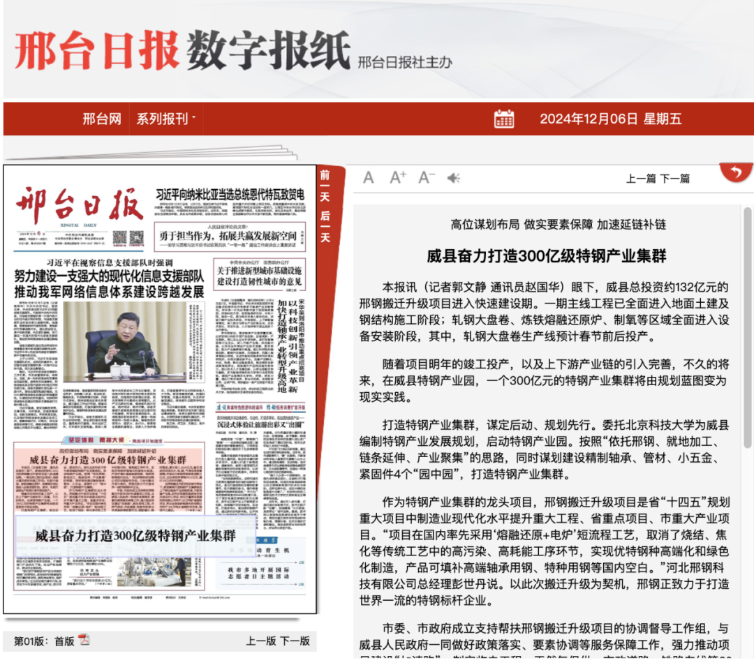 相關(guān):威縣奮力打造300億級特鋼產(chǎn)業(yè)集群