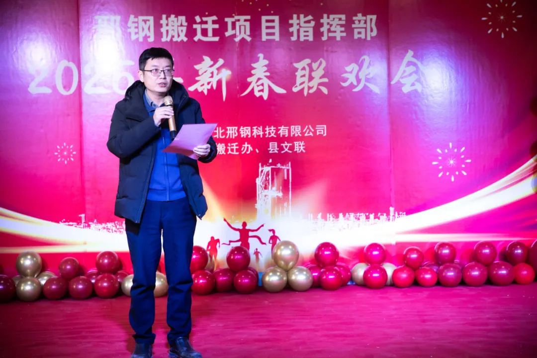 在熱烈、融洽的氣氛中,聯(lián)歡會(huì)拉開帷幕。威縣縣委常委、宣傳部長(zhǎng)、搬遷專班班長(zhǎng)白鋒發(fā)表致辭。他代表威縣縣委、縣政府,向所有關(guān)心支持邢鋼搬遷改造項(xiàng)目的各級(jí)領(lǐng)導(dǎo)和參與建設(shè)的同志們表達(dá)了崇高的敬意和衷心的感謝。并高度評(píng)價(jià)了邢鋼人在過去一年中展現(xiàn)出的團(tuán)結(jié)協(xié)作、頑強(qiáng)拼搏的精神,表示威縣政府將繼續(xù)全力支持邢鋼搬遷項(xiàng)目,推動(dòng)項(xiàng)目早日建成投產(chǎn),為威縣經(jīng)濟(jì)發(fā)展做出更大貢獻(xiàn)。