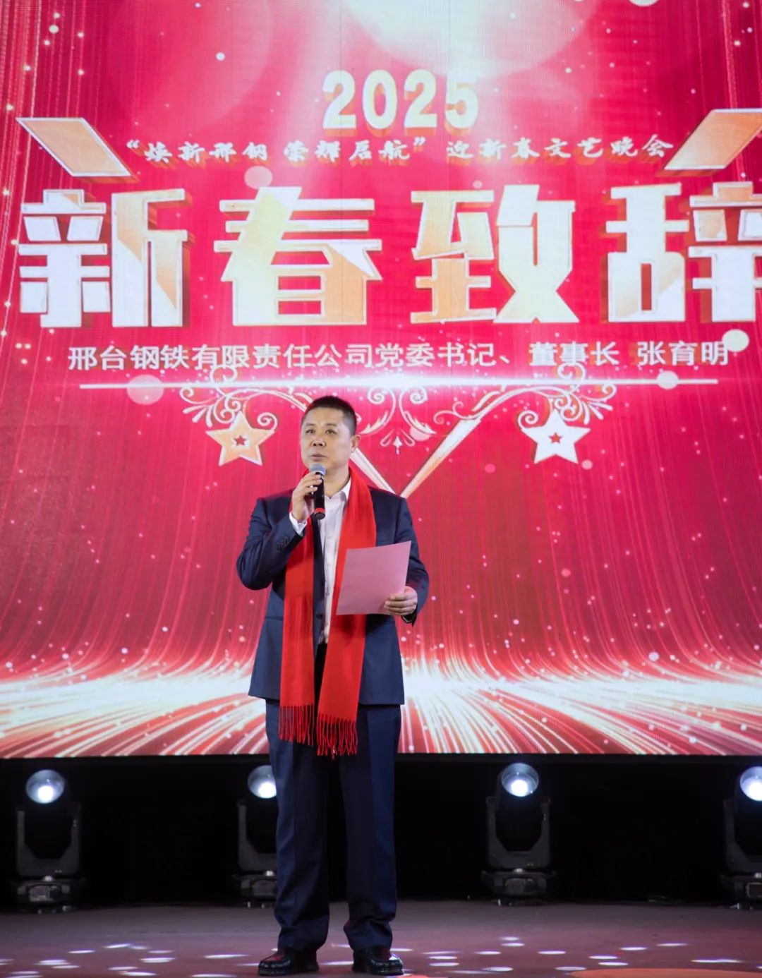 歲序更替,華章日新。1月22日,以“煥新邢鋼,榮耀啟航”為主題的邢鋼2025年新春聯(lián)歡會在公司會議中心炫彩啟帷。公司黨委書記、董事長張育明攜公司全體中高層領導與2024年受表彰的先進個人、員工代表歡聚一堂,喜迎乙巳年新春。